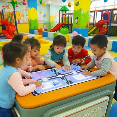 Αυτό το παιδικό διαδραστικό τραπέζι διαθέτει ένα σύστημα παιχνιδιού με οθόνη αφής με παζλ, λογική και διασκεδαστικές λειτουργίες πρόκλησης.Το τραπέζι με την οθόνη αφής εμπλέκει τα παιδιά με δημοφιλή διαδραστικά παιχνίδια που διεγείρουν τη δημιουργικότητα, κριτική σκέψη, και λογική συλλογιστική.